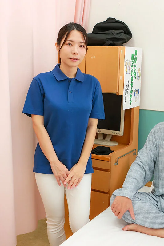 Series: During urinary incontinence improvement training, a beautiful physical therapist presses my breasts so I can’t stop getting an erection. (尿もれ改善トレーニング中に美人理学療法士がおっぱいを押しつけてくるので勃起が止まらない)